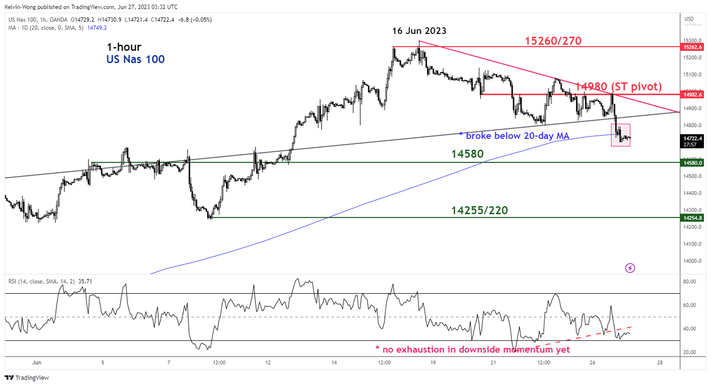 Fig 2: US Nas 100 short-term minor trend as of 27 Jun 2023 (Source: TradingView, click to enlarge chart)