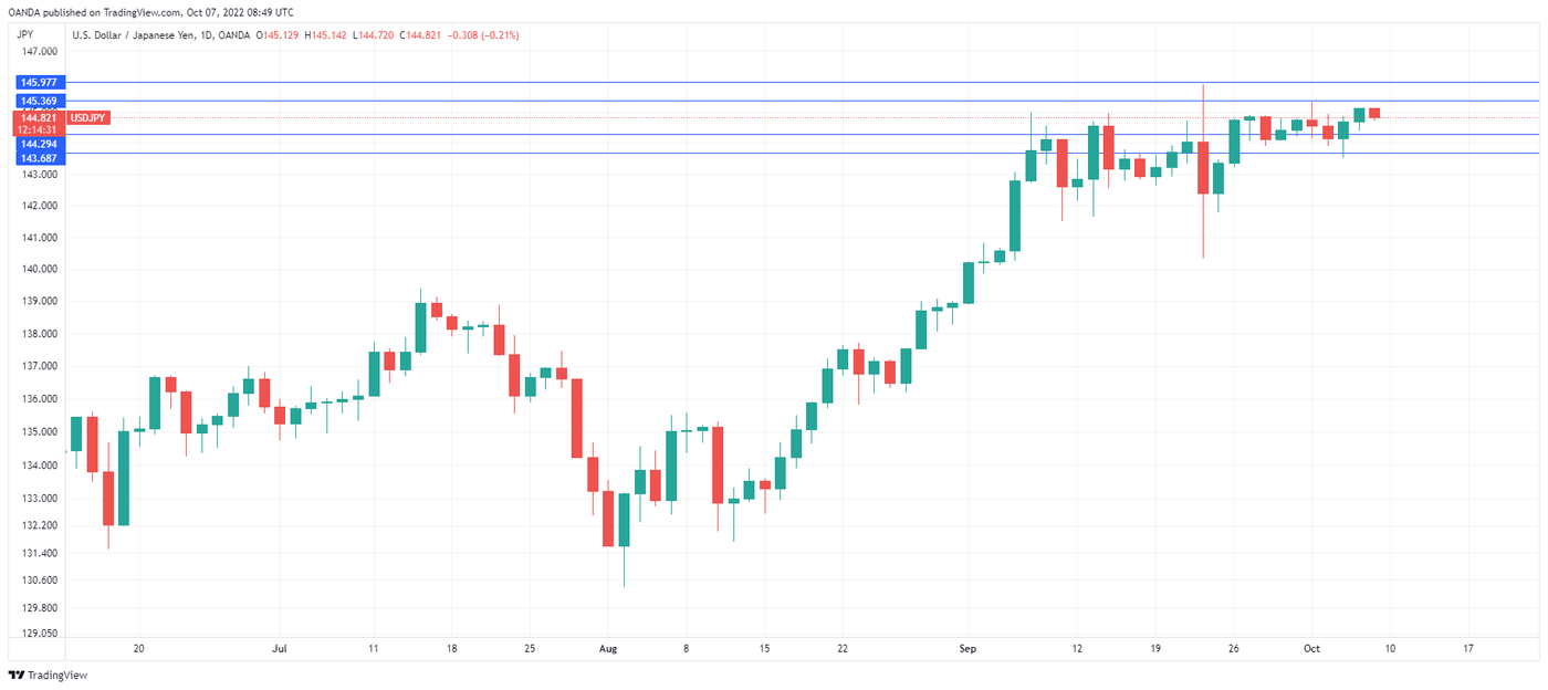 USD/JPY has been hovering close to the 145 line most of the week, and the trend has continued today. In the European session, USD/JPY is trading at 144.81, down 0.21%.
